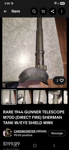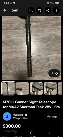 SHERMAN TANK Gunners Sight and starter switch. Switch is in great condition. Gunners sight has condition issues on the outside but you can see down the scope. I posted screenshot of what others are asking for theirs as a comparison. I try and price my items fair and typically competitive.