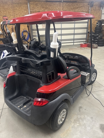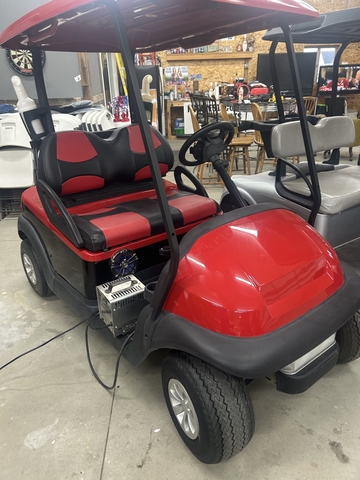REAL CLEAN AND DEFINETELY A EYE CATCHER! RED/BLACK! NOT A SCRATCH. LIKE NEW UPHOLSTERY AND TIRES. HEADLIGHTS AND TAILLIGHTS. BATTERY GUAGE AND CHARGER. 2024 TROJAN BATTERIES. 48 VOLT