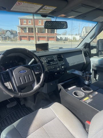 Has a Mobile Office Solutions steel aftermarket middle console with extra storage space as well as slot for a CB radio