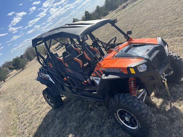 2014 Polaris RZR 900-4 , 4wd, EFI, dual overhead cam, EPS (electric power steering). 1,263 Miles & 101.5 Hrs on the machine. Add-ons winch, 4 off-road spot and flood trail lights, Trunk storage box in bed, spare tire and carrier, and flag mount.
