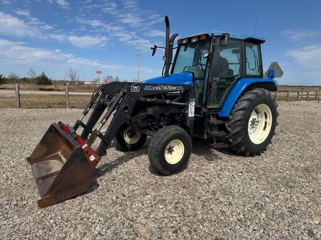 90 horsepower, 24-speed transmission with right-hand shuttle, 3pt, dual PTO, dual hydraulic remotes, cab with heat and air, Westendorf TA-26 loader with quick attach bucket and joystick, very good running and working tractor with 8636 hours. Shipping is available anywhere in the United States. Please call us at 620-736-2038 for more information or to come look at it. Also, please visit our website at www.riggstractorcompany.com to view our current inventory.