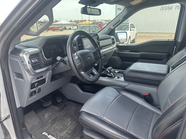 miles 48,032 --- engine 5.0L V-8 -- color Iconic silver metallic -- daytime running lights -- auto high beam headlamps --power heated led mirrors -- remote tailgate release -- trailer sway control -- npower front seats -- 12in productivity screen -- dual climate control leather with heated and cooled front seats -- adaptive cruise control -- 360 degree camera -- remote start -- blind spot mirrors --- blis with cross traffic alert -- fordpass connect 5gwi-fi hotspot telematics moden -- lane keeping assist -- post collision braking -- reverse brake assist -- reverse sensing and rear view camera -- sirius satellite radio -- 6 in chrome running boards -- electronic locking rear axle -- bluecruise equipment -- FX4 off road package -- skid plates -- chrome like PVD wheels -- 36 gallon fuel tank -- wheel well liner -- roll up bed cover -- new MSRP sticker price was $69,200.00 this is a locsl one owner -- very clean -- looks like new --- call at 785-673-4228