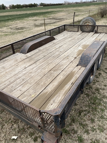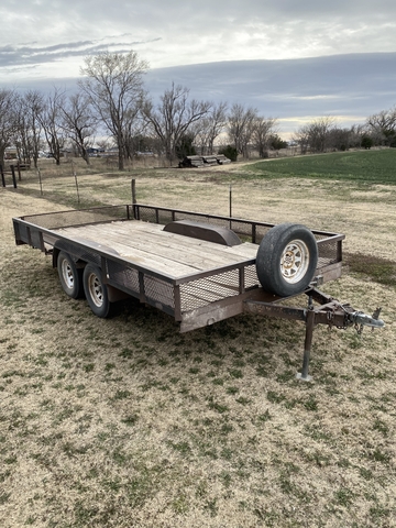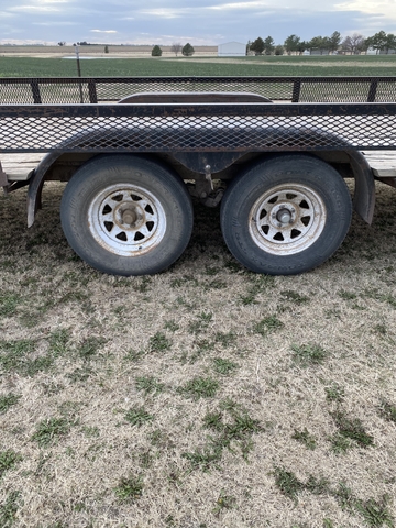 I have this utility trailer for sale. The cargo area/bed is roughly 15.25'x7.25'. Roughly 38" high, 42" tongue length. Two of the tires are just about used up, another has a little more life in it, and the last one is like new. The spare tire is bad. Lights don't work, but I think they are hooked up and ready, they just need a plug wired on. 2" ball, sold on bill of sale. If you have a question that the description or pictures doesn't cover, I'd be happy to help. 785-259-0832