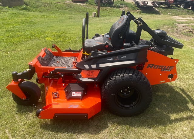 LISTED IS A NEW 2025 BAD BOY ROUGE MOWER WITH A 72" SIDE DISCHARGE MOWER DECK AND THE KAWASAKI FX1000V 38.5 HP EFI EINGINE. THIS IS A CARRY OVER MOWER WITH A LOW CASH PRICE.