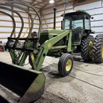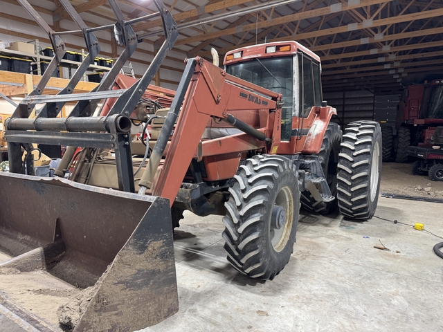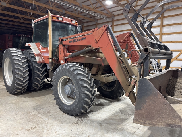 Power shift fwa assist w/310 loader and grapple. 3 pt, PTO, a/c, heat. 7,096 hours with an in-frame done in 2020 by Hoxie Ag Radiator. Less than 200 hrs. since overhaul. Interior and exterior below average but all working parts solid. Has the additional 3-4 reverse gears. Loader is average and works as it should. My dad bought this tractor new. Not sure the year but do have serial number in pictures. Call or text 785-425-8075.