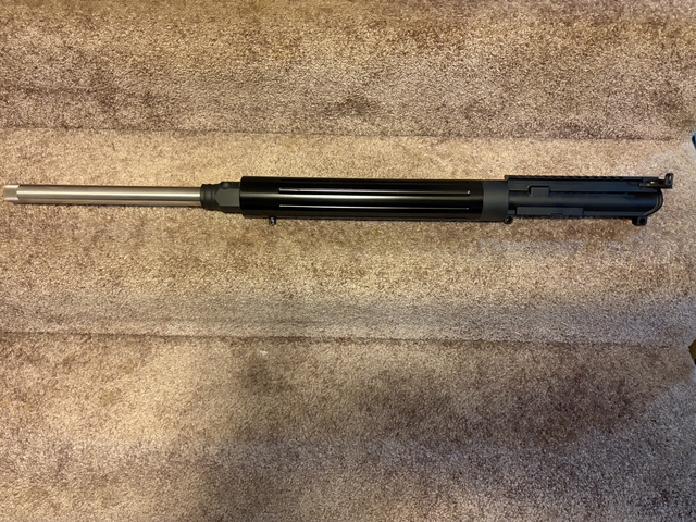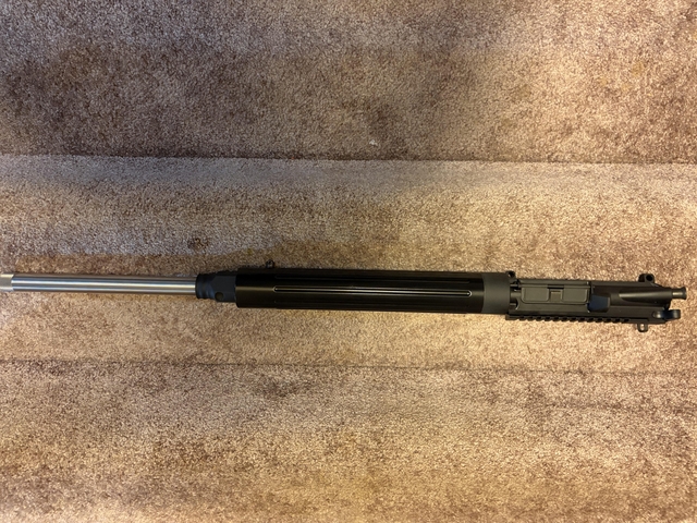 DPMS 24" Heavy Target Barrel complete upper. This is a sought after AR 15 1-9 twist Target barrel that handles up to 69 grain bullets and still keep some velocity. Barrel is very accurate and threaded for suppressor if wanted. I bought it to ring steel at longer ranges with the heavier bullets and has around 350 rounds down it. The receiver and bolt are like new. Be a great upper to be able to switch out with your current AR 15 whenever you wanted to shoot out to longer ranges. Cleaning the safe out and haven't shot it for a couple years. Also has a extended charging handle on it. Any question can text or call 785-462-0 four six four. Asking $400 or best offer. Thanks for looking.