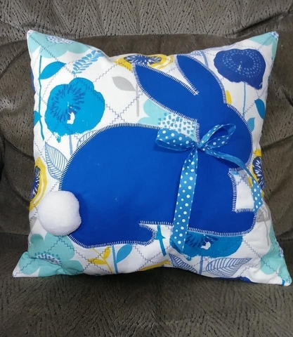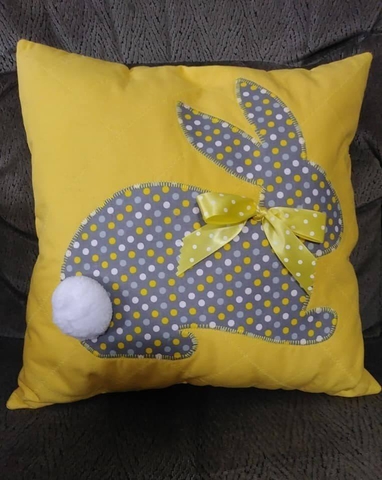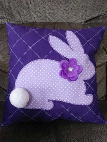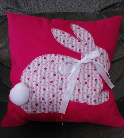Brand NEW~~~Decorative Handmade Quilted Cotton Pillow with Bunny Applique with Fluffy Tail.