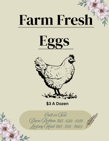 Fresh Farm Eggs from my pampered Chickens to you! $3 a dozen or $5 for 2 dozen. Their clean and kept refrigerated. Located in Victoria but Travel to Hays. I can deliver within reason and time on my way home if needed.. Feel free to call or Text (785) 735-7663 or message me on here