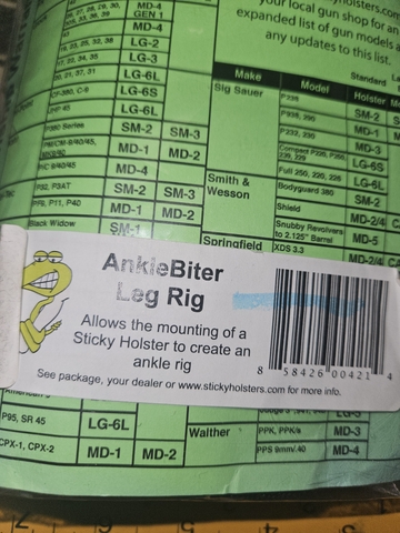This turns your existing "Sticky" brand holster into an ankle holster. This is usually $40.00. This is new with orginal packaging. Asking $25. DOES NOT COME WITH A STICKY HOLSTER. This is just the rig to make it an ankle holster.