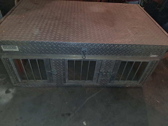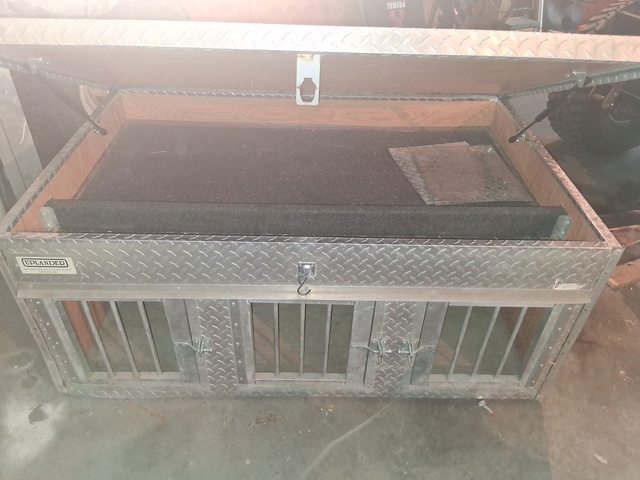 3 hole dog box with top storage and side vents. Holes measure 34 in deep 20 in wide 17.5 tall. Asking 1100.00 If interested text or call