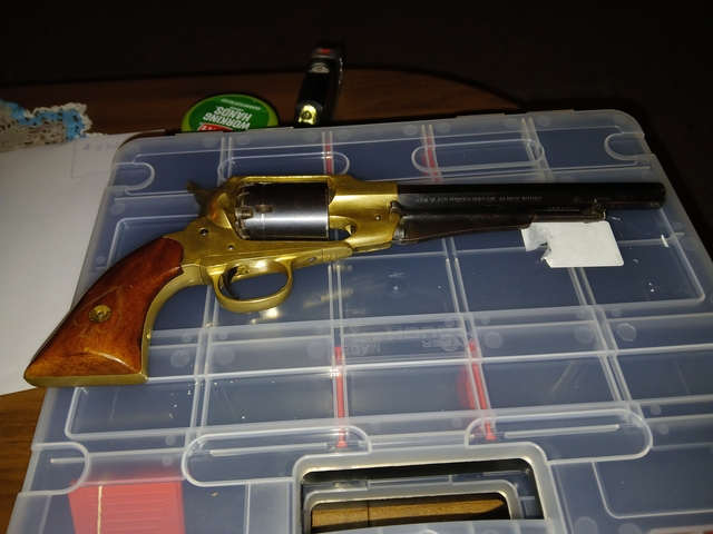 This is a a.s.m. Italy made black powder pistol.the cylinder does not turn all the time like it should.i don't know anything about them.sometimes it will rotate as it should .selling it as is.