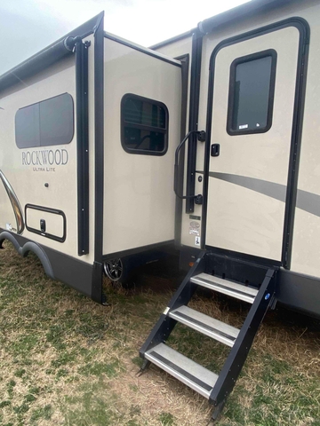 Check out Lot #441 in the Multi-Estate Online Timed Auction going on now by Central Plains Liquidators. It is a 2020 Rockwood Ultra RV Camper. All functions work as they should. Camper has 3 slide outs, and two awnings that extend and retract automatically. It has an auto leveling system. It has a master bedroom with a toilet/shower/sink, and a guest toilet/sink room with an outside entrance. The master bedroom, guest room, and main living area each have their own heating/air conditioning unit. The master bedroom includes a front queen bed, while the rear bedroom offers bunk beds (1 upper, 2 lower) that can be converted into a second queen. Tires are in good condition. Camper owner was a non smoker, and did not have pets. Vehicle information: Unloaded Weight- 7854 lbs, Base Dry Hitch Weight- 810, Base Dry Axle Weight- 6985, Cargo Capacity- 1756, Length (hitch to bumper)- 35' 2", Width- 96", Height (with A/C) -134", Fresh Water Capacity- 60 gal, Gray Water Capacity- 45 gal, Black Water Capacity- 90 gal. Camper has a Kansas title, and has a lien that we will clear upon purchase. Camper is at a separate location near Halsted, Kansas, and must be picked up by appointment. Wire transfer or cashier's check only. If you have any questions, please contact us!