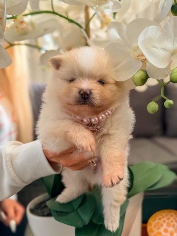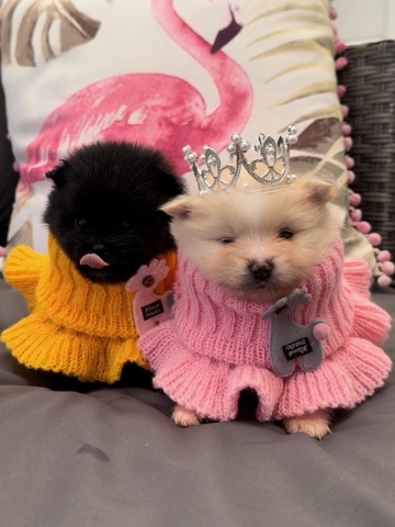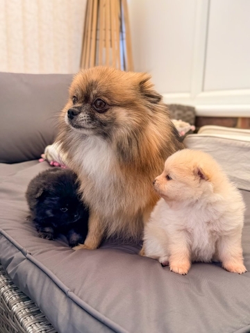 We have five beautiful AKC registered Pomeranian puppies looking for their forever homes. They have been lovingly raised in our family home alongside children and other pets, so they are well socialised and used to a busy household Their mum, Shakira, is our much-loved AKC registered family pet with an excellent pedigree and wonderful temperament. Dad is also a AKC registered stud dog who is very small, extremely fluffy, and equally gentle in nature. Both parents have fantastic temperaments which are already shining through in the puppies Each puppy will leave with: AKC registration paperwork Full vet check Worming and flea treatment Puppy pack to help them settle into their new home We are looking for 5 STARTS homes only for these very special little ones, so please be prepared to answer a few questions about the home you can offer