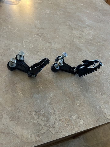 Standard OEM Suzuki, DR 650 foot pegs in as new condition, with proper metric bolts that are grade 8 strong, and springs for all parts needed package. I will accept short texts, And or call me at 316-680-8223.
