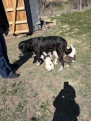 We have 6 puppies (4 girls, 2 boys) which are Pyrenees/Lab/Anatolian Shepard mixes. They are great farm dogs and will protect your property. They are going to be giant dogs. Upwards of 80 lbs or more. They are available immediately and we can work out how to get puppies to you. Puppies are 6 weeks old, on puppy food.