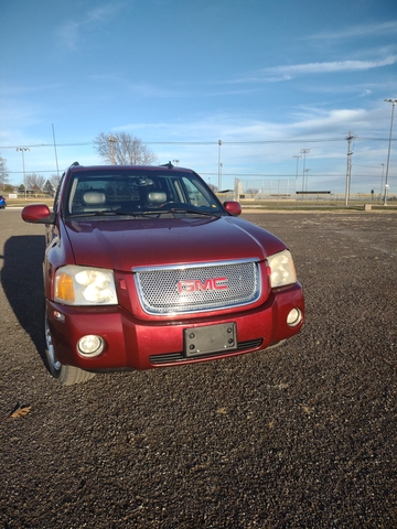 2006 GMC Envoy Denali, 208500 miles. Leather interior, Sunroof, DVD player for back seats. Rear seats fold down for storage. 5.3L V8 engine. New tires about 12,000 miles ago. A/C compressor replaced, works great. Fuel pump, water pump, and alternator are all new within the last 18 months. Runs and drives nice. Call 785-7three8-seven, seven, one, seven for more information. Can also make an offer
