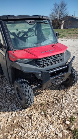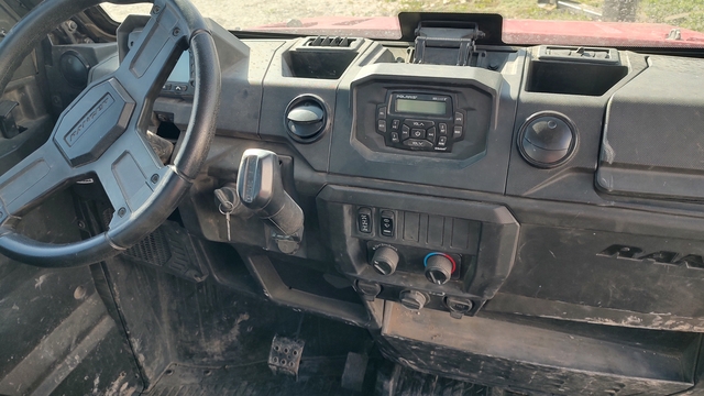 Has full hard cab, mirrors, heater, wiper, stereo, 4wd.