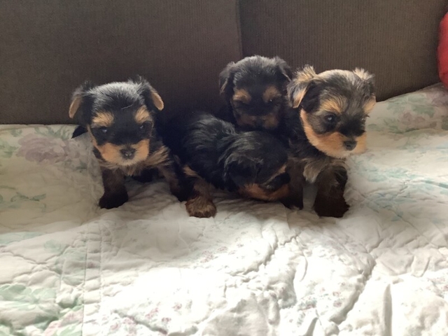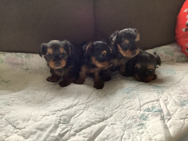We have 5 Beautiful little yorkie puppies. Our puppies are raised with lots of love and cuddles daily. All babies will be ready for there forever homes by mid April . They will come with first vet check and vaccinations ,Deworming x 3 Before rehoming.All parents of puppies are our family pets.
