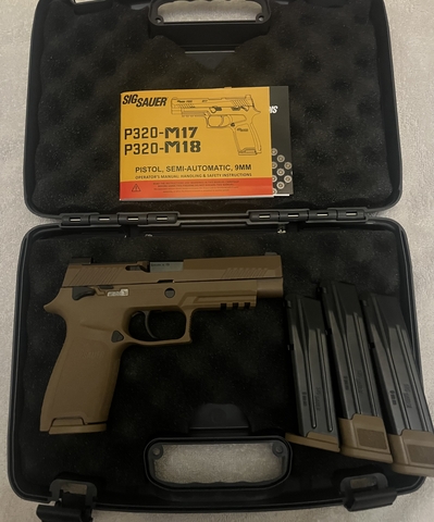 Sig Sauer 320 M17 9mm ... new in box ... 4 hi- capacity magazines $925 or possibly trade for other firearms...can trade up or down ...please call or text me at 785-543-9010.... I'm not on here much ... thanks