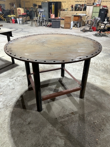 5ft diameter, 3/4" thick top with heavy pipe legs. Would hold up to anything. Asking $1300 OBO