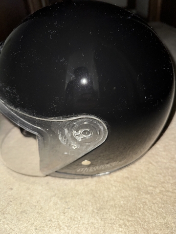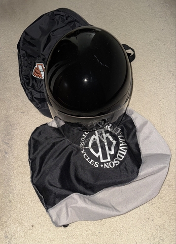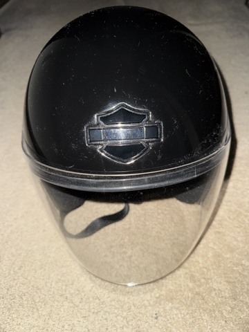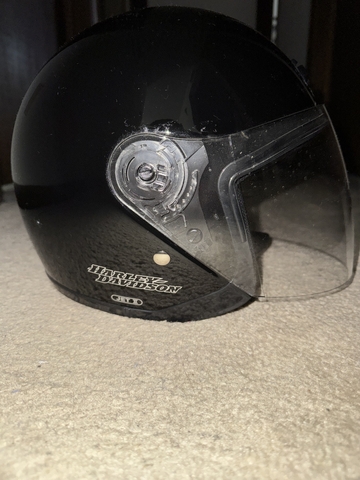 This 3/4 Harley helmet is size Medium, worn several times, never exposed to any harsh elements. Equipped with flip up visor and push button vent. Cleaned only with dry rag. There is one area with a scuff mark (shown in photos). Overall it is in very good condition. Comes with storage pouch and zipper bag. $40 CASH, in person only, in Hays.