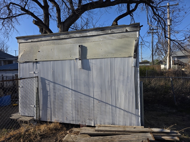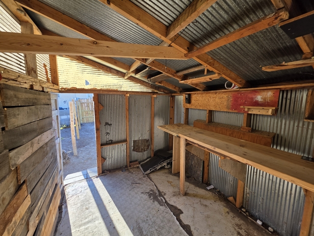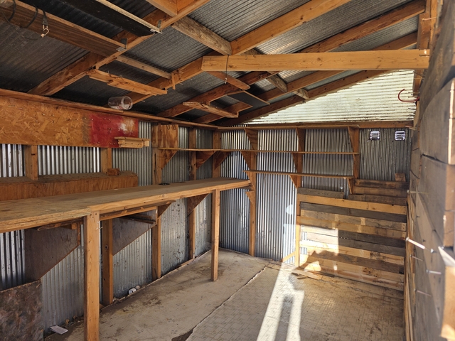 The shed was on the property when I moved in. I've been using it for years with the workbench and having some tools in here. It has been extremely handy. It's well built and has a nice solid floor. Tin Roof, tin sides, with translucent sheets added for working light. Very comfortable building. I had the 2x4 in the center put up just so I could store some wood boards overhead. Nothing ever got wet in the shed despite there being a few little issues and overall everything stayed pretty clean.