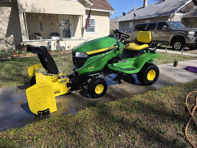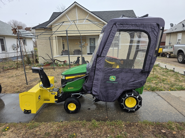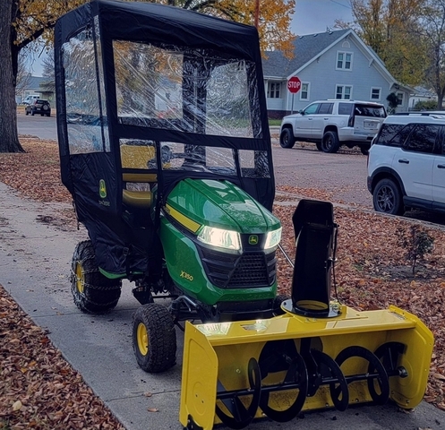 2022 X350. Includes snow blower and snowblower hitch. Has a 54 inch mowing deck. Includes the lift assist kit... an absolute must have with these! Snow cab was new last year. Terra grippers new this year. Also have a set of chains that can go with it. 12v outlet kit for power. Snow bra. Led headlights.