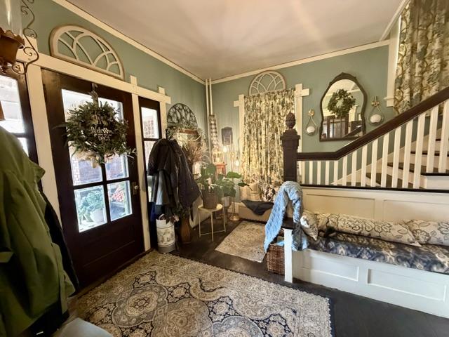 Step onto the expansive front sitting porch, which provides an inviting outdoor living and relaxation space. Upon entering, you'll be greeted by a nostalgic entryway featuring a lovely front door with sidelights, leading to a spacious foyer with charming bench seating and an open staircase.