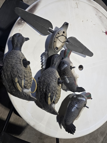 2 mojo greenwing. 2 lucky duck blue wing, 1 lucky duck dove, all run off AA batteries, no remotes, all have wings and poles