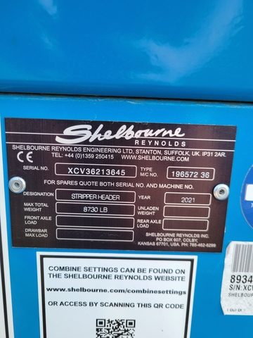 2021 Shelbourne Reynolds stripper header. Fendt Ideal adapter plate. Have the Deere adapter plate and gears to convert back sold separately. Always shedded.