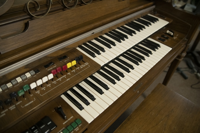 This organ has built in auto rhythms like rock, waltz and jazz and preset tones eg. piano and banjo. It plays well and has a roll down cover over the keys. Also the bench included.