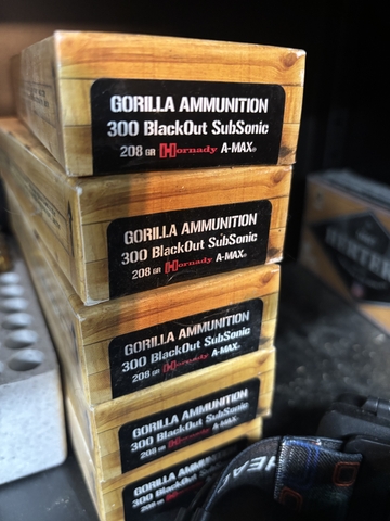 I'm selling 8.5 boxes of 300 Blackout subs rounds the have the Hornady 208 A-Max bullets. My pistol won't cycle them and my forend is too long and small in diameter to fit my suppressor and I don't wanna change the gas block so I'm selling. $32 a box or $240 for the lot