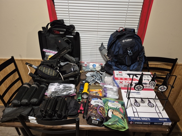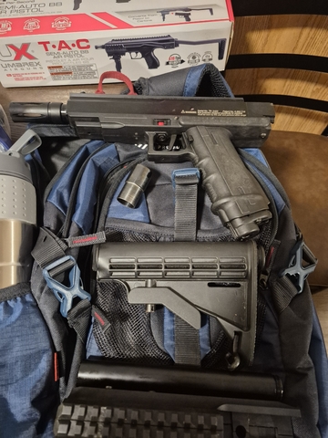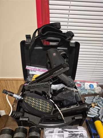 I have tiberius t9 paintball gun that turns into pistol I had originally got it because it does shoot the rubber bullets and pepper bullets theres 1200.00 in the paintball gun take and all the accesiores a umarex 17 round bb gun ithco2 bbs and target it does goe into a person not for kids and bug out bag telescoping flashlight super high beam adjustable zippo hygiene and more threeonesixtwofiveninetwosixzeroone