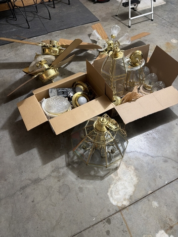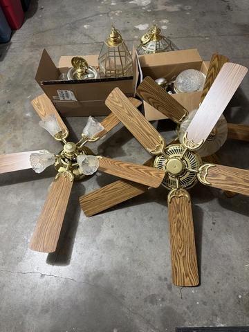 Fans and light fixtures. All sold together. Buyer must pick up. All in working order.