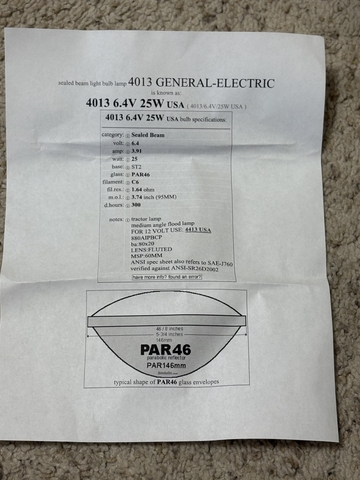 Tractor Headlight M-4013 25W 6-8V Par 46