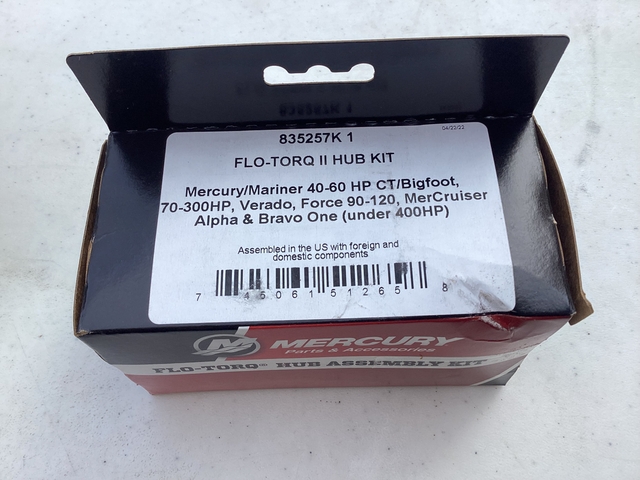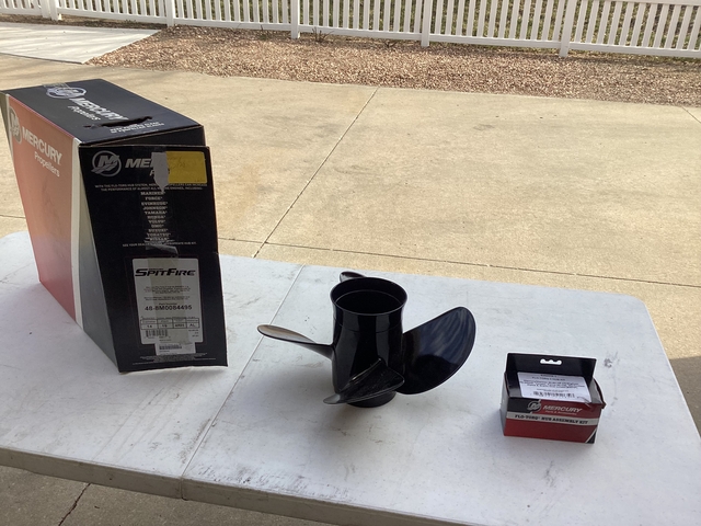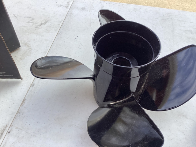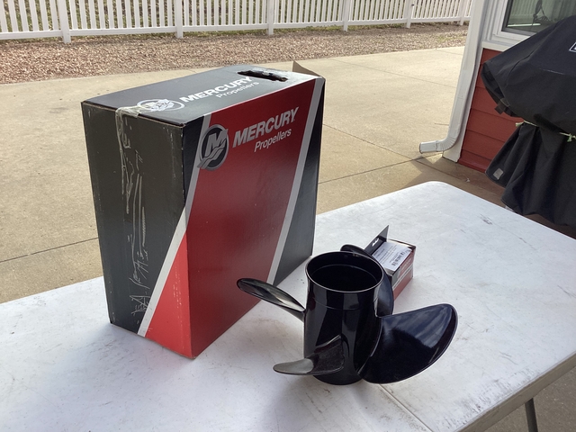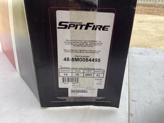 Selling new in the box a Mercury Spitfire 4-Blade Aluminum propeller, 14 diameter 19 pitch. Part number 48-8M0084495, MSRP $278. Many business charge shipping and sales tax. Prop is complete with Mercury Flo-Torq II hub kit. Propeller will fit Mercury outboards 135-300 HP & Mercruiser Alpha/Bravo Sterndrives. With a different hub kit prop will fit most all outboard engines manufactures. Serious inquiries and cash only. Located in Lawrence Kansas and might ship at buyers expense. Contact by Messenger, if interested.