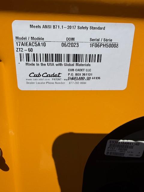 60" inch deck, 24hp Kawasaki engine, changed oil and filter, air filter, and fuel filter on 4-4-2026. Comes with an extra set of new blades.