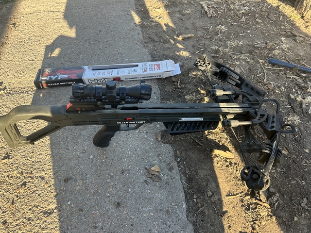 Killer instinct crossbow Needs restring limbs are fine comes with arrows and a cocker. 100 cash.