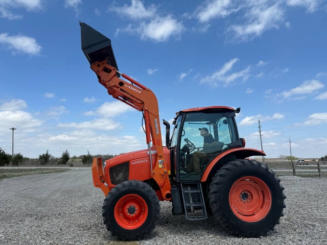 110 horsepower, 14-speed partial power shift transmission with left-hand reverse, 3pt, dual PTO, dual hydraulic remotes, 4-wheel drive, cast center rear wheels, cab with heat and air, air ride seat, sun roof, LA1954 loader with skid steer style quick attach bucket and joystick with 3rd function with auxiliary hydraulics on loader, good running and working tractor with 2186 hours. Shipping is available anywhere in the United States. Please call us at 620-736-2038 for more information or to come look at it. Also, please visit our website at www.riggstractorcompany.com to view our current inventory.