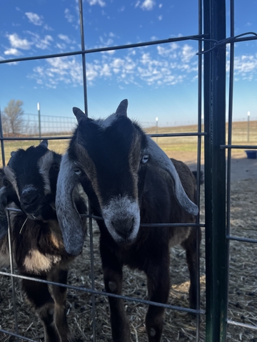 Nubian mix does born the day before Halloweeen 2025. Will sell individually or together. Buck that sired them is 100% Nubian. Does that are the mothers are Nubian mixes price is per goat