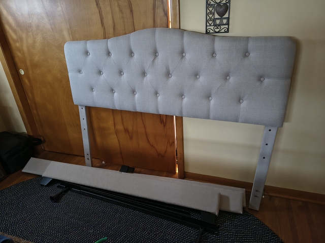 Have the frame supports and wood also, as new. These were never used as we just used the headboard and box as a pretty around a bed.