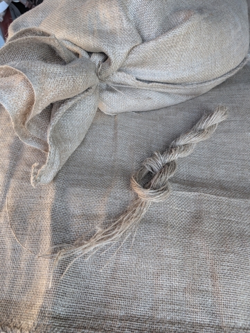 New, just opened: I bought too many. $2 a piece, up to 500 bags available. They hold 60 pounds of wheat. I use a loose strand to make bag ties in a cow-hitch knot