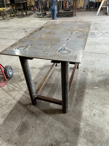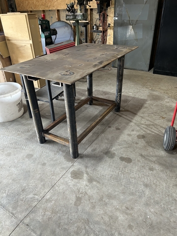 33inches wide x 60inches long and 3/8's thick, standing 37" tall. Good ole shop table. Asking $450 OBO
