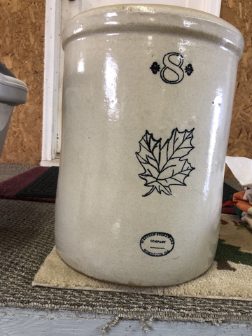 Western stoneware maple leaf 8 gallon crock. Monmouth Illinois. Near perfect condition