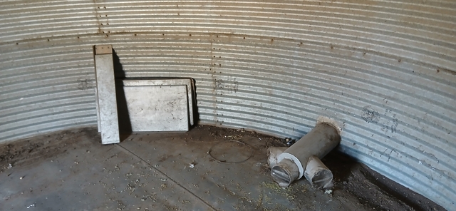 No damage to bin exterior. Small rusted out spots on edge of galvanized floor. Overall bin is in great shape with no damage to exterior of bins.