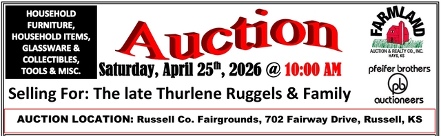 We will be conducting an auction for the late Thurlene Ruggels & Family at the Russell County Fairgrounds starting at 10:00am.