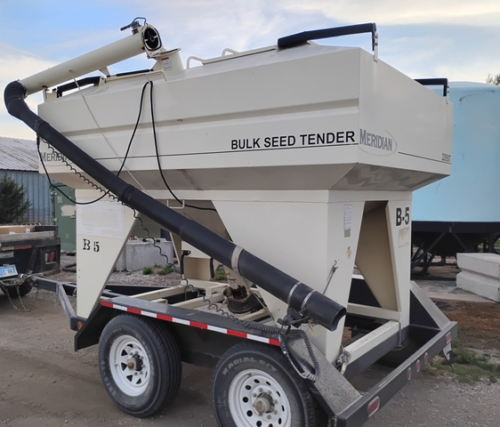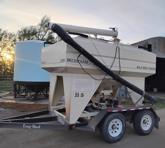 For Sale: Meridian 220 seed tender, 16" tires, Honda engine with electric start, (2) 110 bushel hoppers, telescoping seed tube with on/off switch, poly cupped flighting.