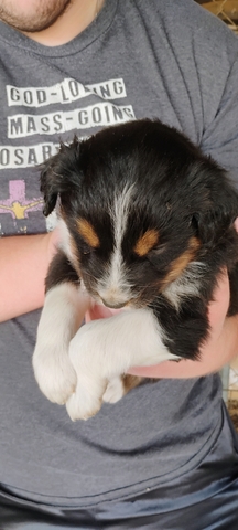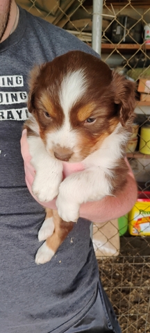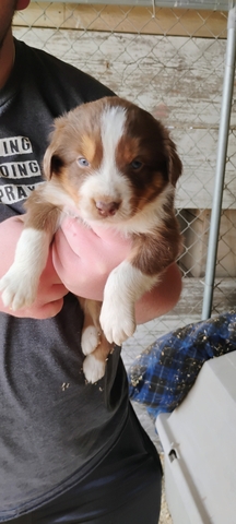 Born March 6th. Will be ready to go April 18th. We have four females. One Black Tri, two Red Tri's, and one Blue Merle. Tails and dewclaws done by our veterinarian. Father is registered AKC and Mother is from registered ASCA grandmother. I have raised Aussies for 24 years. Wormings started. They will receive their first vaccination on April 17th. Contact me for more information and pictures. I update this ad to reflect what I have available.