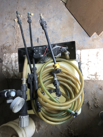 20 gallon Simpson sprayer rigged with 2 spray hoses for spraying thistle