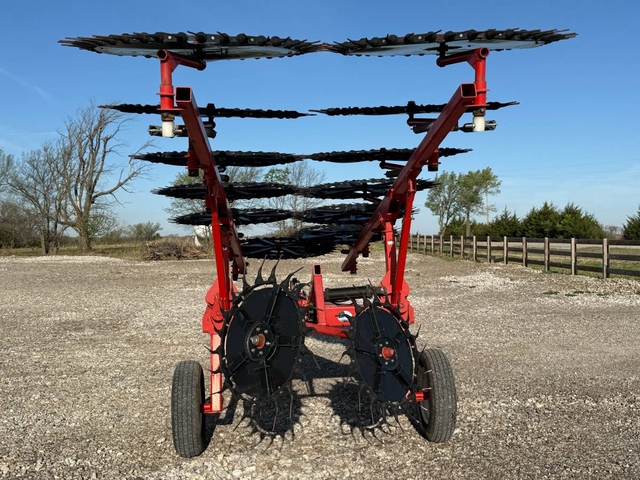 12 wheel rake, hydraulic fold, double kicker wheels, rubber-mounted teeth, wind guards, nice rake ready to go to the field. Shipping is available anywhere in the United States. Please call us at 620-736-2038 for more information or to come look at it. Also, please visit our website at www.riggstractorcompany.com to view our current inventory.